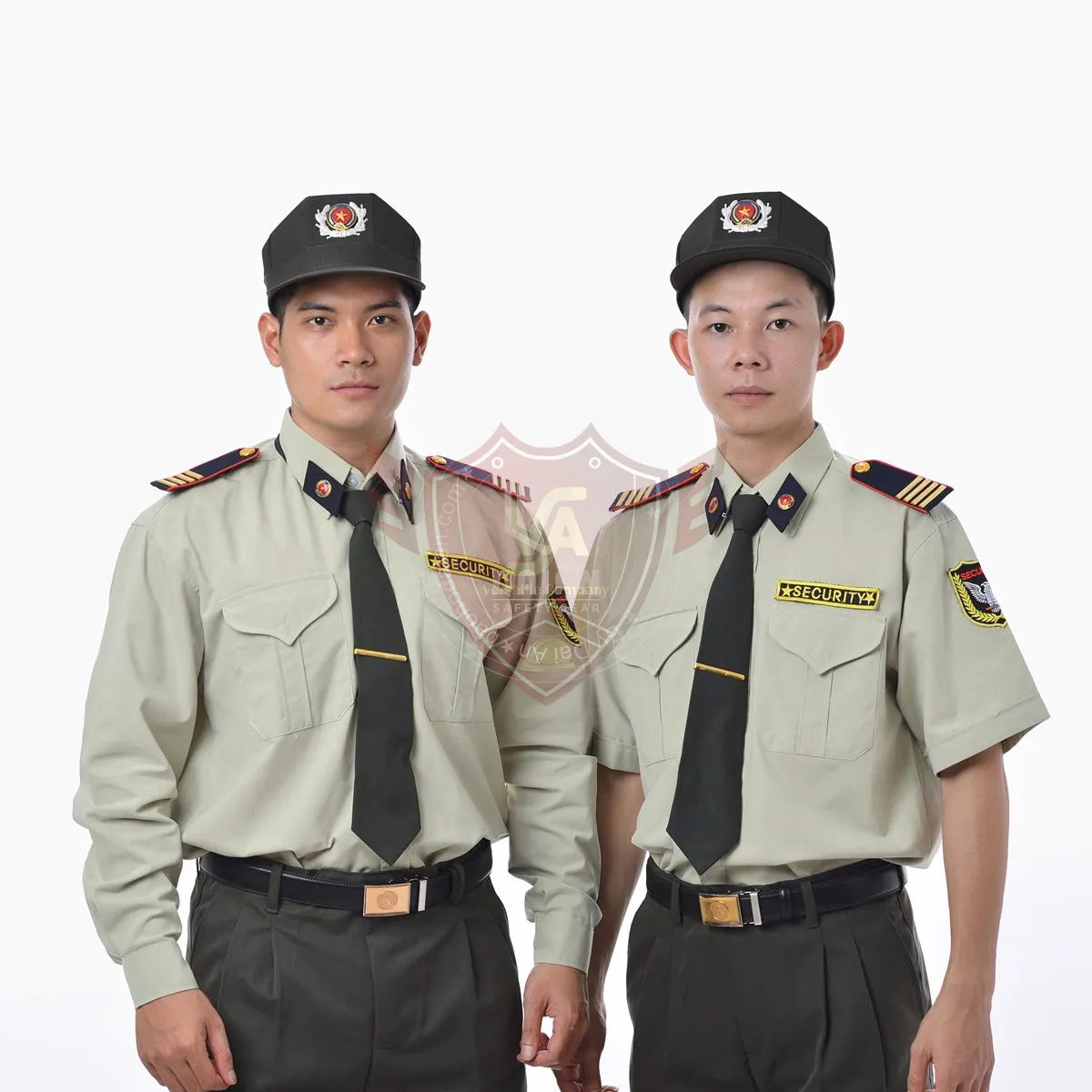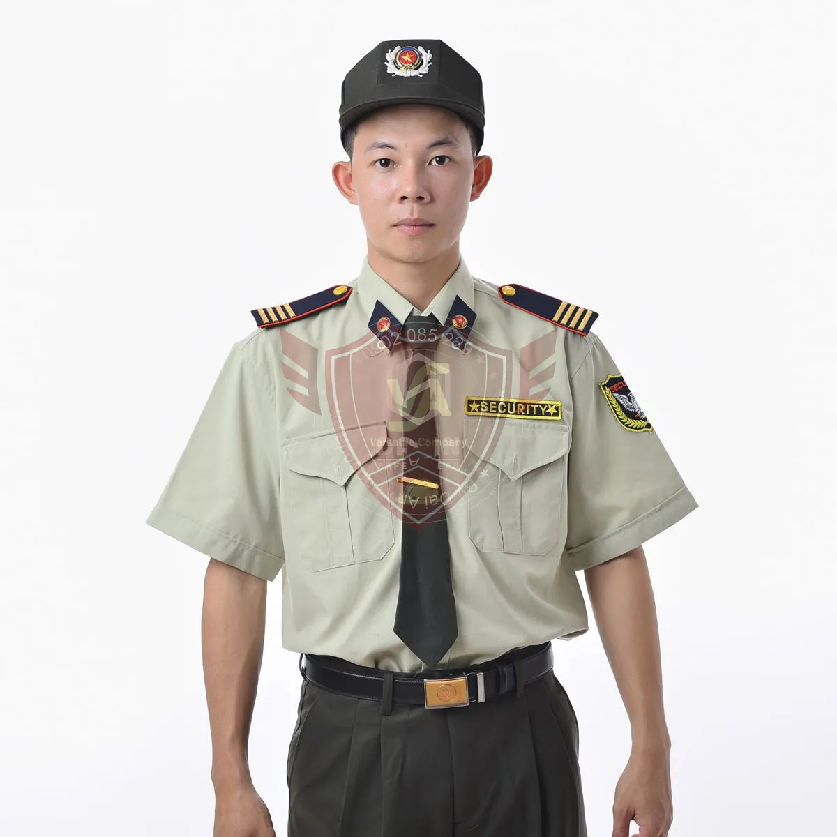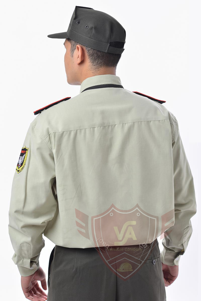Ngoài ra, áo còn có cầu vai – chi tiết đặc trưng giúp tăng tính thẩm mỹ và thể hiện đặc trưng ngành bảo vệ. Phần vai áo rộng rãi giúp người mặc di chuyển, giơ tay, cúi người thoải mái mà không bị gò bó.