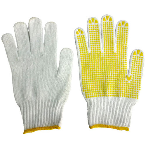 Găng tay phủ hạt nhựa vàng được sản xuất trên dây chuyền hiện đại, nguồn nguyên liệu được lựa chọn cẩn thận. Sản phẩm găng tay được kiểm tra kỹ lượng, tỷ lệ lỗi rất thấp, đường may chính xác, cotton có độ bền cao.
