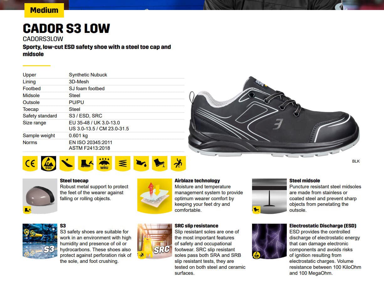 - Và để phân biệt với dòng Cador S1P (thể thao/thoáng khí/đa sắc màu) và dòng Cador S3 LOW TLS (có hệ thống khóa vặn) thì dòng Cador S3 LOW không có hệ thống khóa vặn nhằm tiết kiệm chi phí cho người lao động