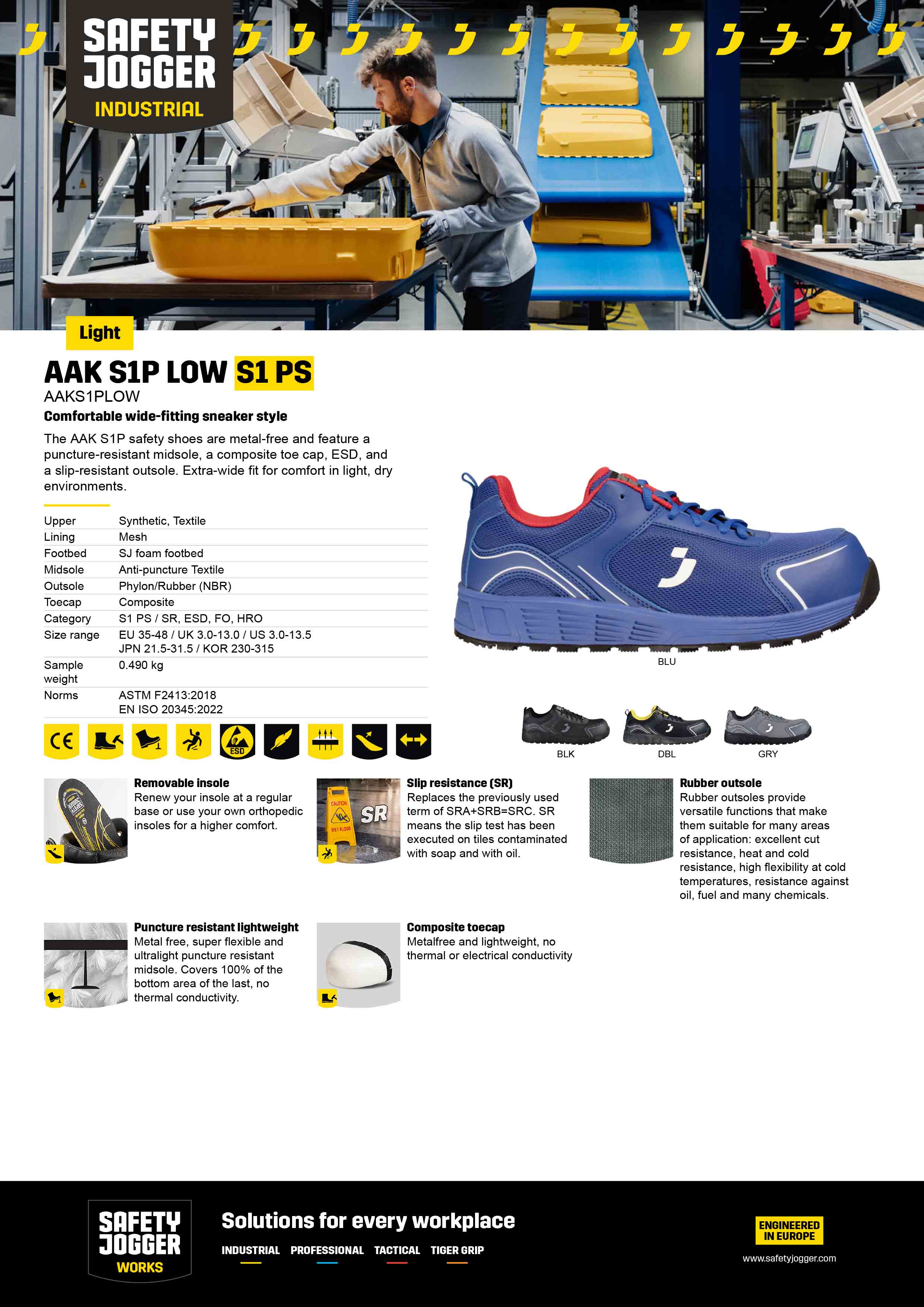 Giày bảo hộ êm chân Safety Jogger AAK S1P - Lựa chọn thông minh cho sự an toàn và phong cách của bạn. Safety Jogger AAK S1P là người bạn đồng hành lý tưởng, mang đến sự an toàn và thoải mái tối đa cho bạn trong mọi môi trường làm việc