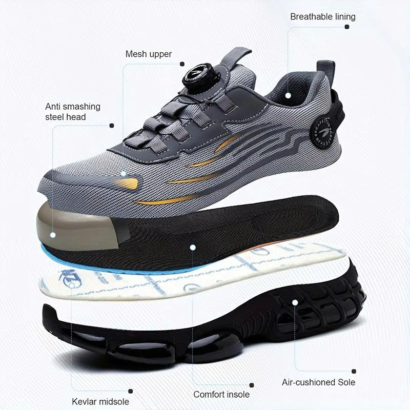 Hệ thống khóa vặn tiện lợi, dễ dàng điều chỉnh độ rộng, mang lại cảm giác thoải mái và vừa vặn cho người sử dụng. Mũi giày và đế giày làm bằng thép, chống va đập và chống đâm xuyên, bảo vệ an toàn cho đôi chân của bạn.