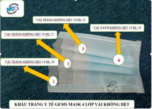 Khẩu trang y tế 3 lớp / 4 lớp vải không dệt kháng khuẩn 2S gồm: