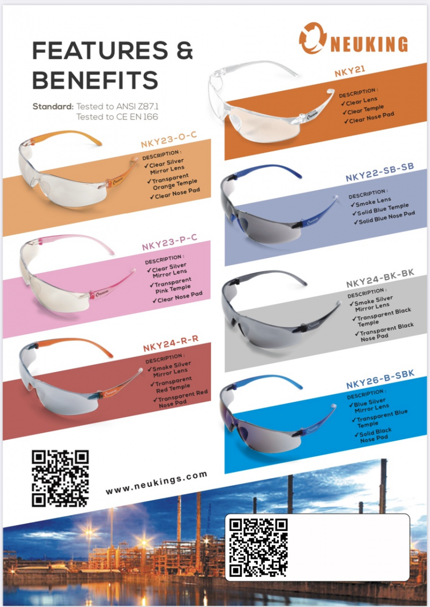 - Tiêu chuẩn: ANSI Z87.1 – Tiêu chuẩn Mỹ; CE EN166 – Tiêu chuẩn Châu Âu; TCVN 5082:1990 , 5039:1990